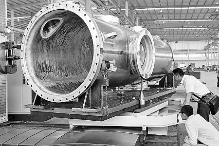 5月7日,來自德國的專家正在中原內(nèi)配股份有限公司的生產(chǎn)線上調(diào)試設(shè)備。該企業(yè)位于孟州市產(chǎn)業(yè)集聚區(qū),目前投資15億元建成的30條氣缸套生產(chǎn)線已投產(chǎn),所生產(chǎn)的氣缸套低碳環(huán)保性能達(dá)到通用、福特等歐V新機(jī)型技術(shù)標(biāo)準(zhǔn)。(記者 王 錚 攝)