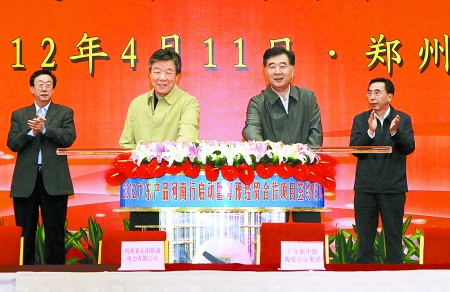 河南日?qǐng)?bào)訊 (記者平 萍 田宜龍 張建新)4月的中原大地,春暖花開(kāi),生機(jī)盎然。11日上午,2012廣東產(chǎn)品河南行啟動(dòng)暨粵豫經(jīng)貿(mào)合作項(xiàng)目簽約儀式在鄭州國(guó)際會(huì)展中心隆重舉行。率廣東省黨政代表團(tuán)來(lái)豫考察的中共中央政治局委員、廣東省委書(shū)記汪洋,省委書(shū)記、省人大常委會(huì)主任盧展工出席并共同啟動(dòng)廣東產(chǎn)品河南行活動(dòng)。廣東省委副書(shū)記、省長(zhǎng)朱小丹,省委副書(shū)記、省長(zhǎng)郭庚茂分別致辭。