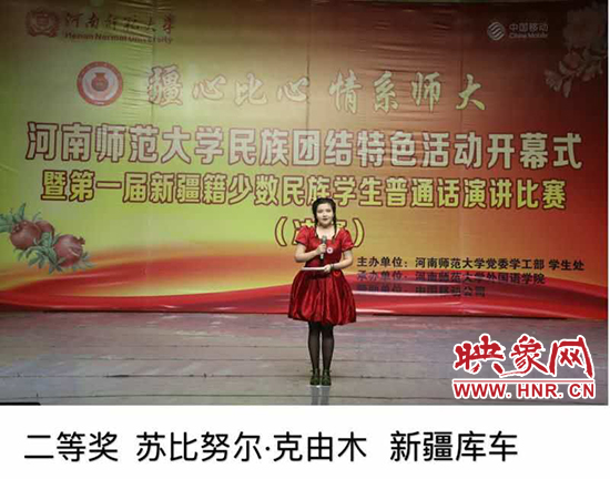 映象網(wǎng)訊 11月27日,由河南師范大學(xué)黨委學(xué)工部、學(xué)生處主辦、外國(guó)語(yǔ)學(xué)院承辦的河南師范大學(xué)民族團(tuán)結(jié)特色活動(dòng)暨第一屆新疆籍少數(shù)民族學(xué)生普通話演講比賽在帕瓦羅蒂音樂(lè)廳舉行。