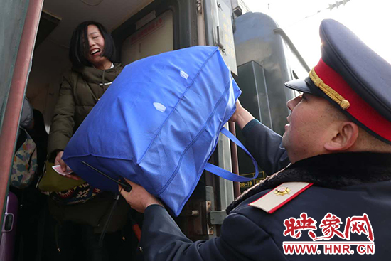 元旦佳節(jié)到來(lái),新鄉(xiāng)車務(wù)段新鄉(xiāng)車站全面加強(qiáng)旅客服務(wù),為旅客安全出行、方便出行、溫馨出行提供保障。圖為該站工作人員在幫旅客抬送行李。(通訊員 常浩