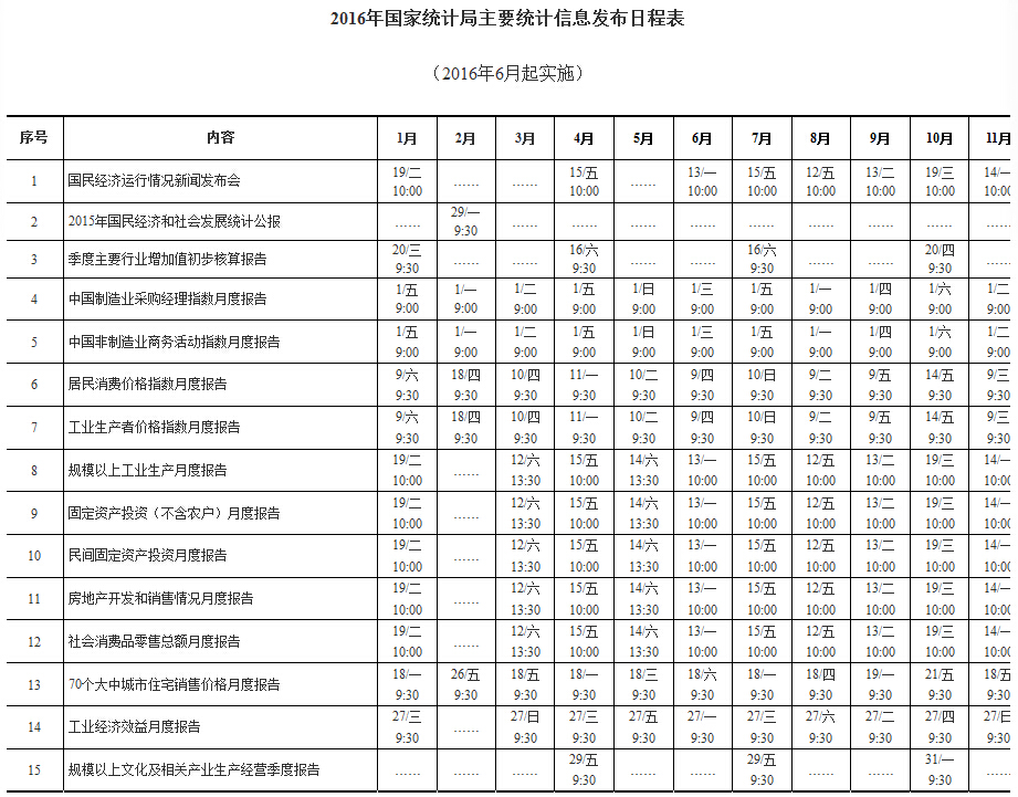 今年各月度新聞發(fā)布會舉辦時間分別為6月13日、8月12日、9月13日、11月14日和12月13日,CPI、PPI、PMI發(fā)布及季度新聞發(fā)布會時間不變。