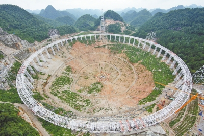 500米口徑球面射電天文望遠(yuǎn)鏡雛形初具圖片來自新華社