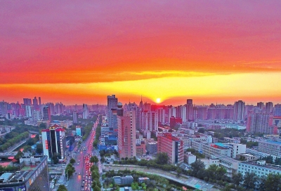 不怕蘑菇云,就怕火燒云。蘑菇云含雨,火燒云兆熱。昨天,在度過了一個悶熱熏蒸的白天后,鄭州的天空到了傍晚,煮起了紅色的晚霞,黃的紅的云,在西半天蒸騰著。本已打算拉上黑幕的夜晚,返照回光,天地大亮。
