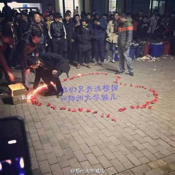 有時候表白失敗的因素不一定是被拒絕了,還有可能是學(xué)校領(lǐng)導(dǎo)的滅火器!在鄭州財經(jīng)學(xué)院,女主還沒來,一場還未開始的表白就已經(jīng)結(jié)束了,心疼那個男同學(xué),估計現(xiàn)在那帥男已經(jīng)哭暈在廁所,嗚,領(lǐng)導(dǎo)“法海”你還我愛情。