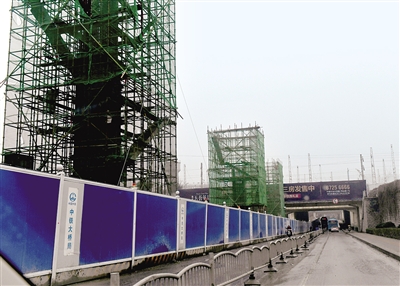 農(nóng)業(yè)路跨鐵路橋西側(cè)橋墩已經(jīng)開始矗立