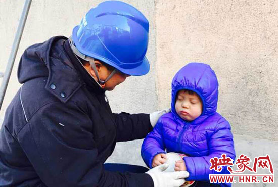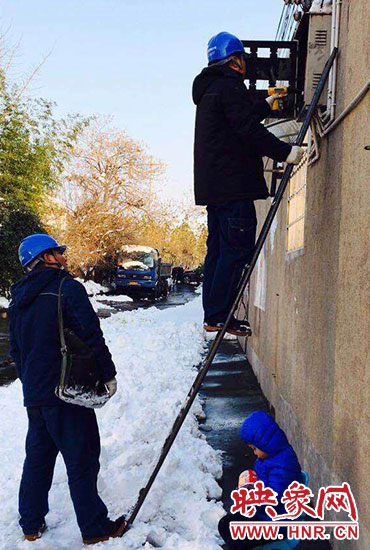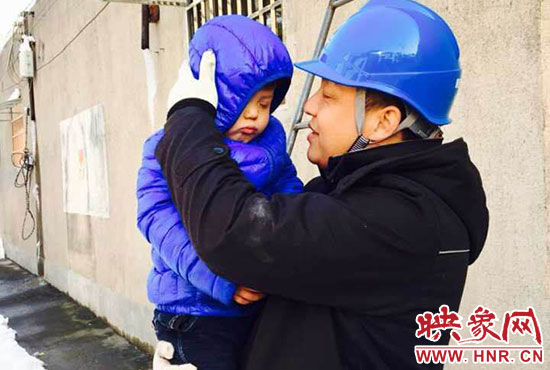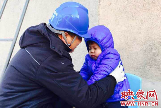 “你兒子睡著了,快下來吧?!?1月23日,正在架電線的新密供電公司岳村供電所員工李磊聽到同事叫他。李磊的兒子叫李昕龍,今年5歲,由于李磊妻子不在家,幼兒園又因雪放假,沒人照看李昕龍,李磊只好帶著他去上班。正在安裝智能表的李磊,聽到同事叫他,趕緊朝下一看,兒子在冰天雪地里已經(jīng)睡著了。他急忙從梯子上下來,把孩子抱起來,由于剛睡著,孩子竟然沒有醒來,他只好繼續(xù)抱著孩子睡覺。