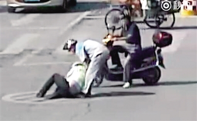 眾人合力將輔警轉(zhuǎn)移到路邊