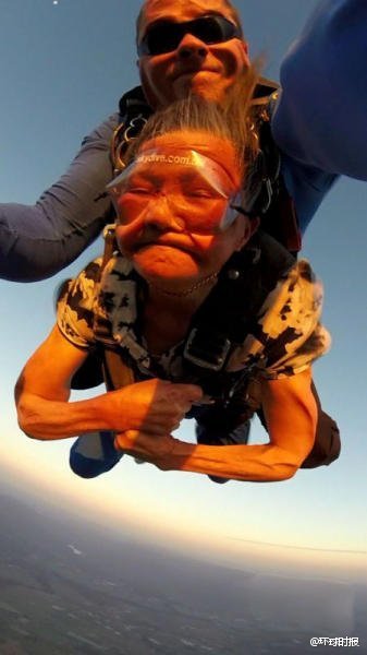 17、中國81歲老太澳洲玩高空跳傘