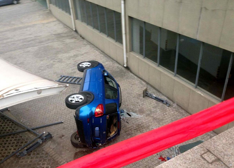 10.女司機(jī)倒車墜下6米高臺(tái) 幸好人沒事兒