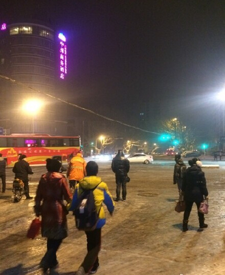 雪停了,但是路上的雪被車碾軋之后比較光滑。@大河寒江雪 :南陽路快速公交站,等了半小時沒見一輛公交。@清qing茶:桐柏路農(nóng)業(yè)路交叉口已經(jīng)有兩輛公交車因路滑橫到馬路上了??傊鲩T不管是開車還是騎車還是步行都要千萬小心!遲到不要緊,安全才第一!