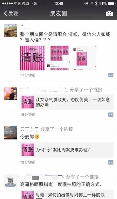 上午十點(diǎn)半左右,不少微信用戶反映其朋友圈被“請(qǐng)配合清帳”刷屏(如圖)。騰訊回應(yīng)稱:已確認(rèn)是由于少部分服務(wù)器上午升級(jí)導(dǎo)致短暫不穩(wěn)定,持續(xù)時(shí)間大約5分鐘?,F(xiàn)在已經(jīng)恢復(fù),主要受影響的是廣東聯(lián)通用戶。