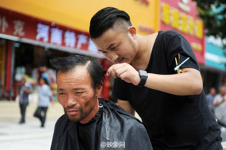 從7月21日開始,一位名叫紅濤的理發(fā)師,每逢周二在鄭州街頭免費為流浪人員理發(fā),他希望用此項行動呼吁大家關注街頭流浪人員群體。紅濤說,他還打算免費為農(nóng)民工等群體理發(fā),讓他們感受到社會的溫暖。