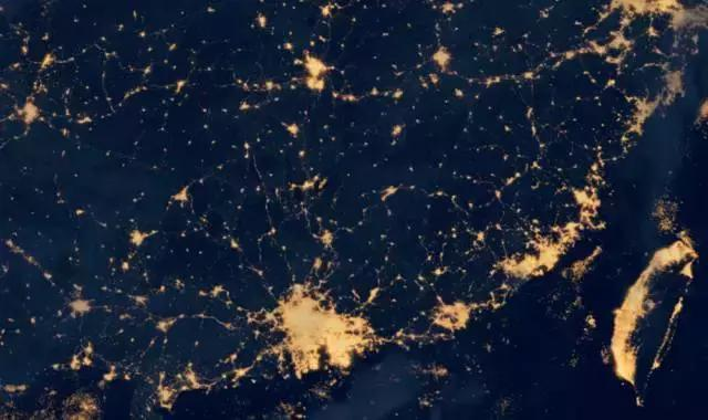 先來(lái)看珠三角,珠三角的城市燈光幾乎融為一體,從廣州到深圳再到香港澳門(mén),城市的地理邊界基本消失。