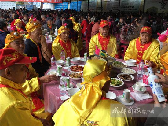在重陽節(jié)即將來臨之際,來自四川、云南兩省的2000多名老年朋友,歡聚在宜賓縣喜捷鎮(zhèn),當?shù)剞r(nóng)民企業(yè)家李興海耗資十余萬元辦了200桌壩壩宴,請老人們過重陽節(jié)。