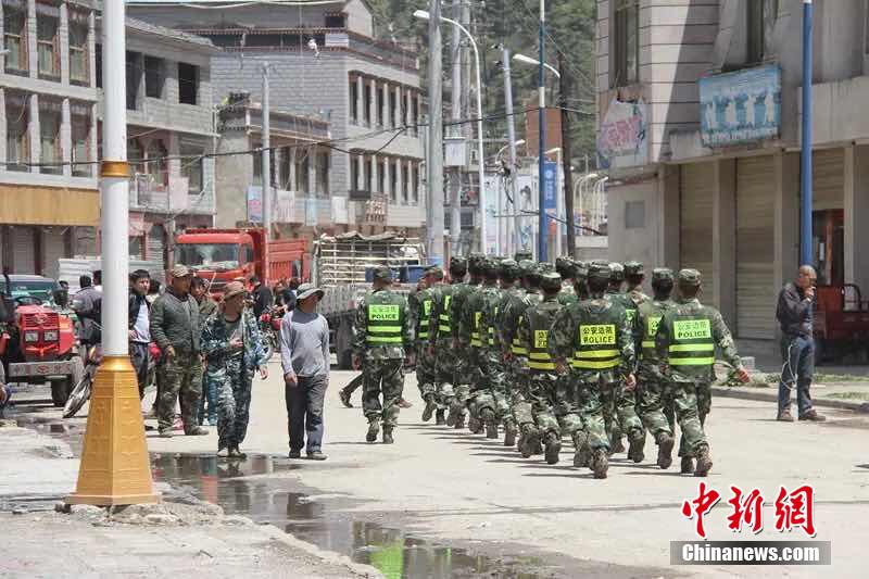5月12日下午15點05分,尼泊爾再次發(fā)生里氏7.5級地震,吉隆方向震感強(qiáng)烈。地震發(fā)生后,機(jī)動支隊二大隊立刻組織22人的救助小組趕赴幫興村進(jìn)行救援,挨家挨戶開展搜救,并轉(zhuǎn)移和安撫受災(zāi)群眾。在吉隆鎮(zhèn)街面擔(dān)負(fù)巡邏任務(wù)的官兵成功從救出1名受傷群眾,并及時將其送往醫(yī)療點進(jìn)行醫(yī)治。目前,大隊官兵正繼續(xù)對附近村莊進(jìn)行排查。中新社發(fā) 楊鴻輝 攝