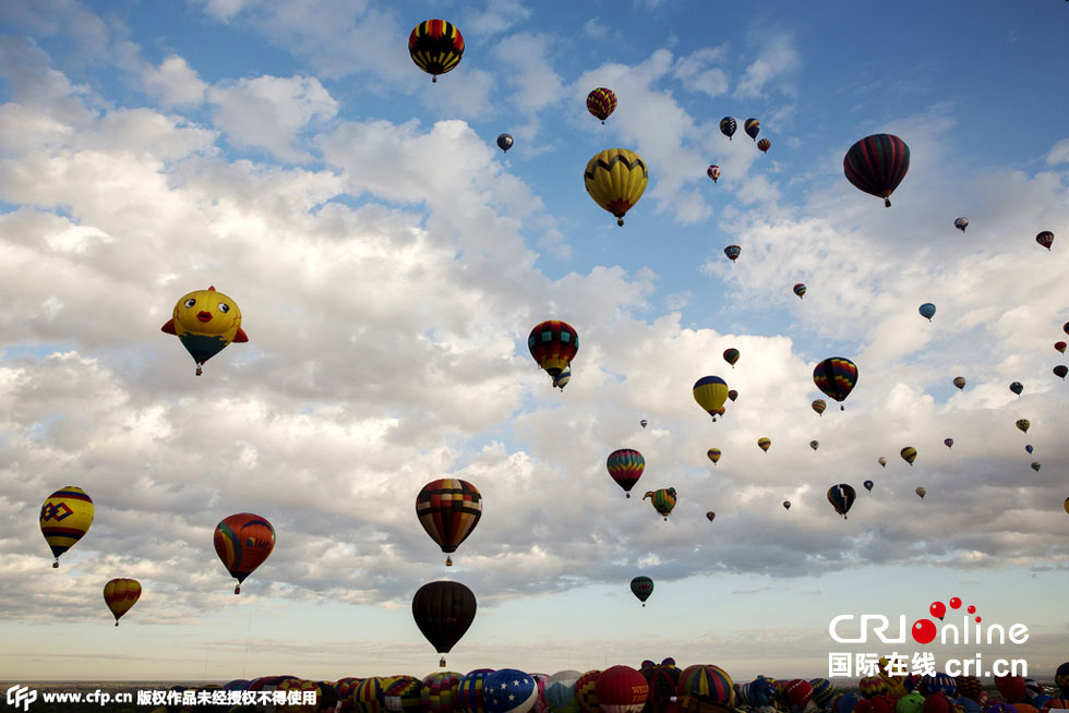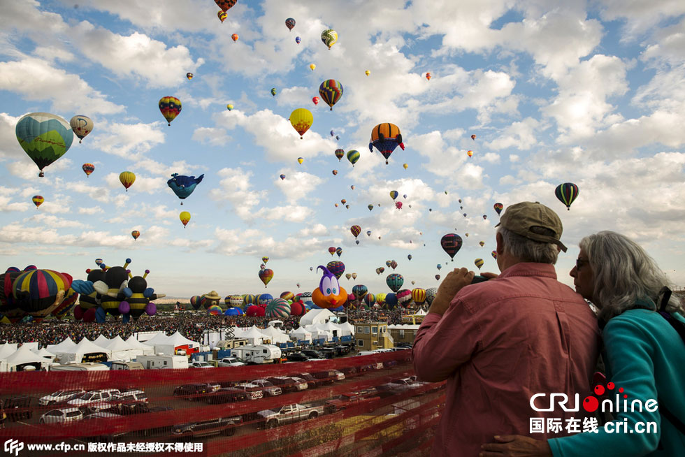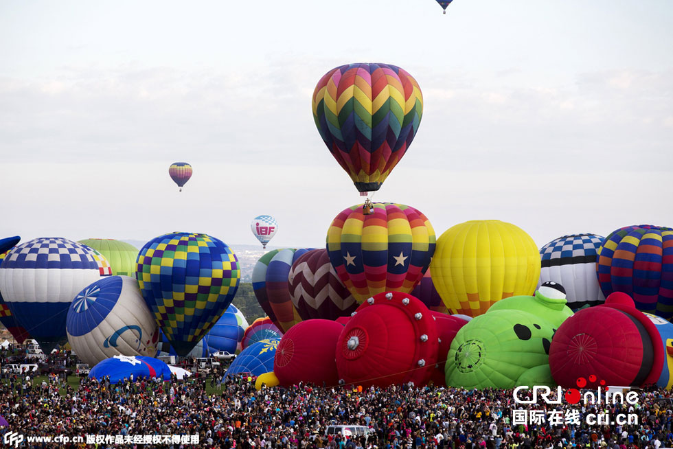 當(dāng)?shù)貢r(shí)間2015年10月3日,美國(guó)新墨西哥州阿爾伯克基,2015阿爾伯克基國(guó)際氣球節(jié)開幕。圖片來(lái)源:CFP