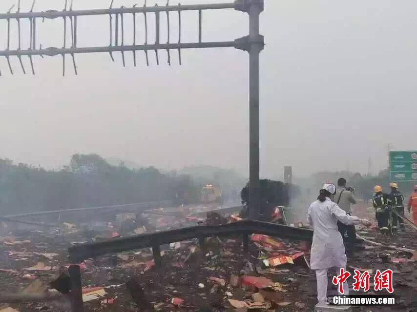 據(jù)江西省高速部門(mén)10月30日消息,當(dāng)日15:20左右,距離滬昆高速公路分宜互通2公里處發(fā)生油罐車(chē)爆炸事件,爆炸導(dǎo)致分宜收費(fèi)站內(nèi)辦公樓和宿舍大面積玻璃碎裂?,F(xiàn)場(chǎng)圖片顯示,有大量煙花爆竹燃燒痕跡。目前,江西省高速、交警、醫(yī)護(hù)、消防等相關(guān)部門(mén)已在現(xiàn)場(chǎng)。事故情況正在進(jìn)一步核實(shí)中,傷亡情況未知。(李琴 攝)