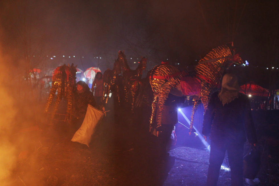2016年2月23日凌晨,山東省濱州市惠民縣小霹靂莊,宋代古冢牛保冢上一年一度的正月十六祭祀活動(dòng)正式開始,方圓百里萬余百姓陸陸續(xù)續(xù)趕來祭祀,以求風(fēng)調(diào)雨順,家和事興。多種祭祀用紙馬先后被抬上祭壇引燃,化作火龍直沖云天,數(shù)量足有數(shù)千匹之多,場面壯觀且奇異,親臨現(xiàn)場宛若置身神鬼大片,令人印象深刻。