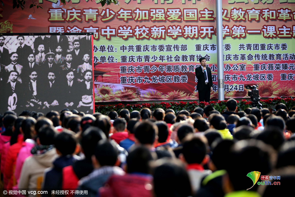 2016年02月24日,重慶,開(kāi)學(xué)第一課由聶榮臻元帥陳列館報(bào)告團(tuán)成員為同學(xué)們宣講老一輩無(wú)產(chǎn)階級(jí)革命家的豐功偉績(jī)。視覺(jué)中國(guó)