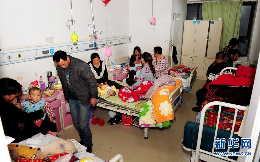 2月22日,在河南省開封市杞縣人民醫(yī)院,原本標(biāo)配3張床位的15平方米兒科病房被放置了5張床。病兒及家屬共計(jì)14人擠在狹小的空間里。新華社發(fā) 馮大鵬 攝 圖片來源:新華網(wǎng)