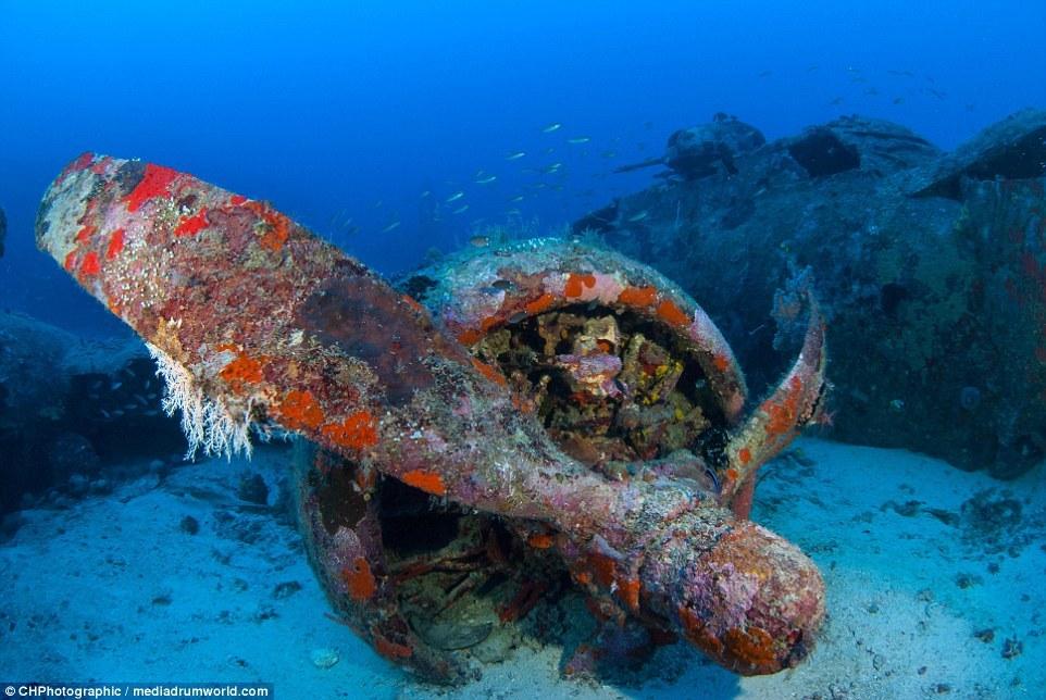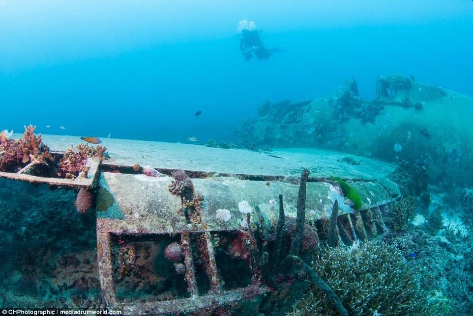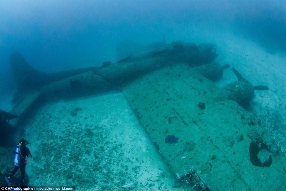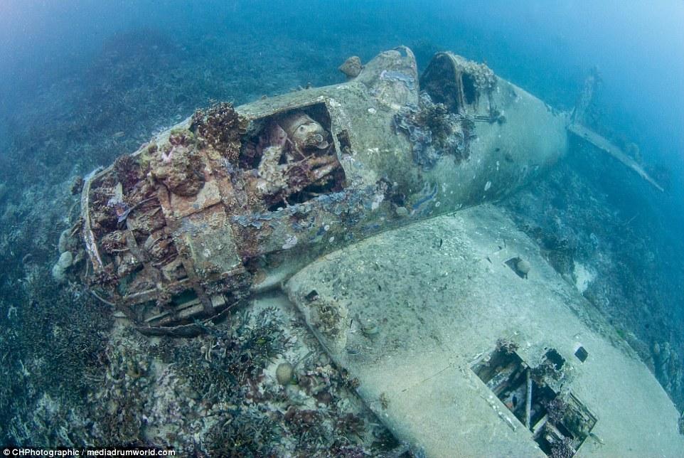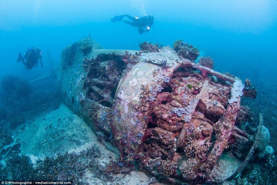 “當(dāng)我穿過珊瑚和海面看這架飛機(jī)的時候,我十分震驚,它居然這么完好的保存著,機(jī)體的完整存在讓人相信這是真實的戰(zhàn)斗機(jī)。“克里斯托弗說。“你看見它靜置在那里,有一種時間停止的感覺?!?/p>