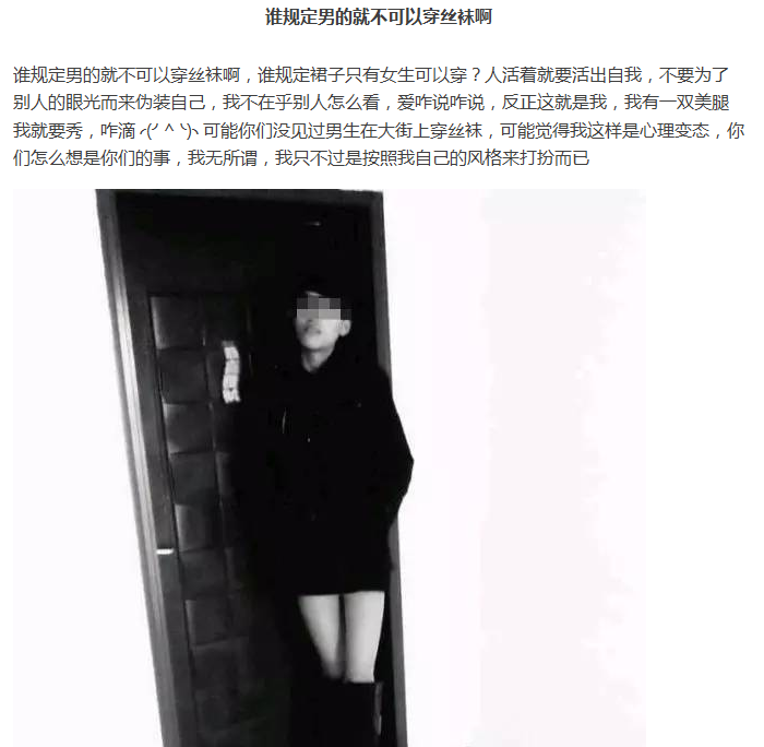 好吧,小編還是第一次見到這位網(wǎng)紅,難免心情有些小激動(dòng)。畢竟每個(gè)人都有一顆愛(ài)美的心和追求美的權(quán)利。只是這位小伙很“勇敢”的表達(dá)出了自己內(nèi)最深處的想法和最真實(shí)真是的自我。對(duì)此,小編只想說(shuō):請(qǐng)收下我的膝蓋!實(shí)在是佩服佩服!最后,也祝愿這位小伙早日找到能夠陪伴自己相愛(ài)一生的伴侶。