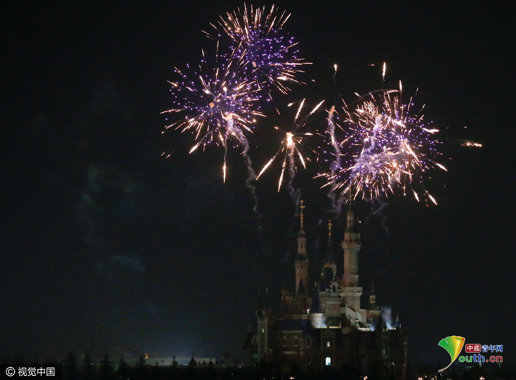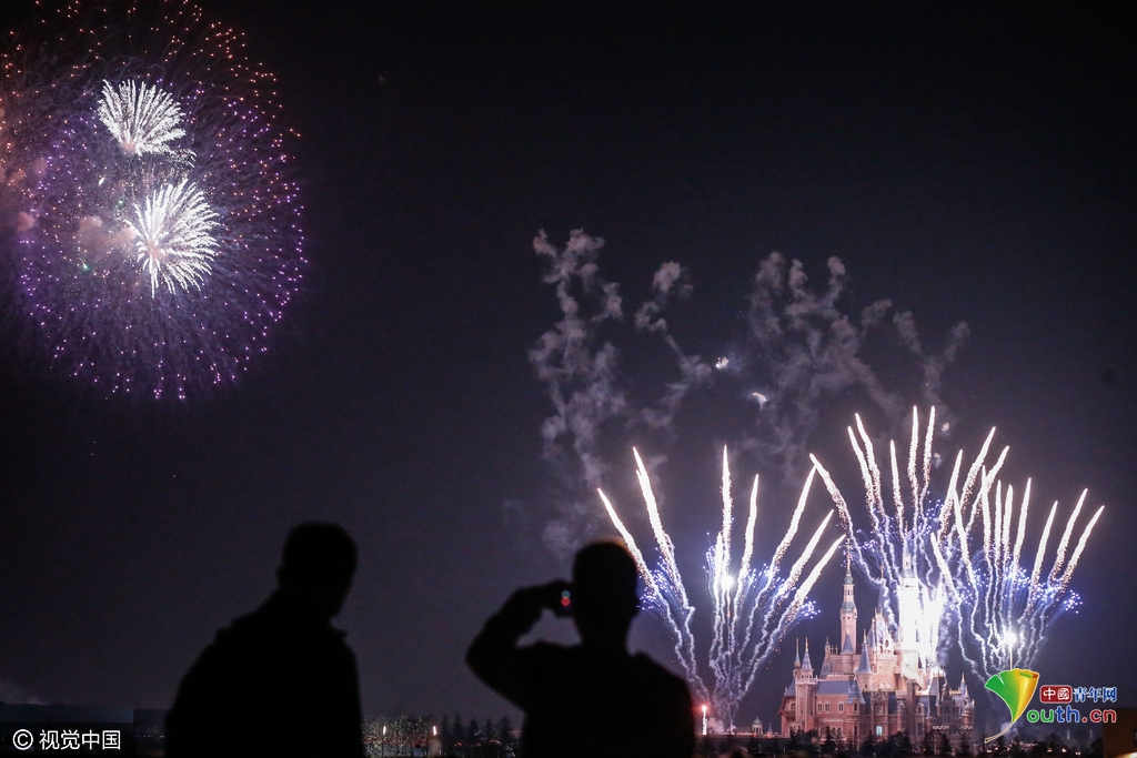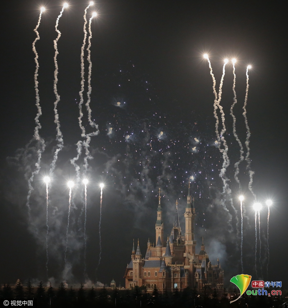 2016年3月28日晚,上海迪士尼樂園進行了第一次煙花試放。晚上9時許,兩道明亮的煙火在人們的歡呼中劃破天際。在隨后的27分鐘內(nèi),10余組姿態(tài)各異的煙火在空中依次綻放,萬千煙花“噴薄”而出,迪士尼城堡在煙火的照射下清晰可見。