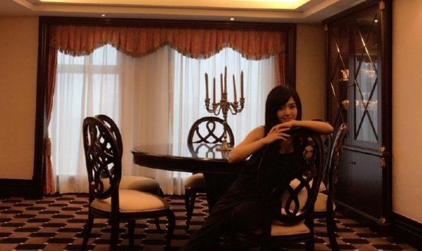 蒼井空看似是在外地出席活動,在酒店里拍照。