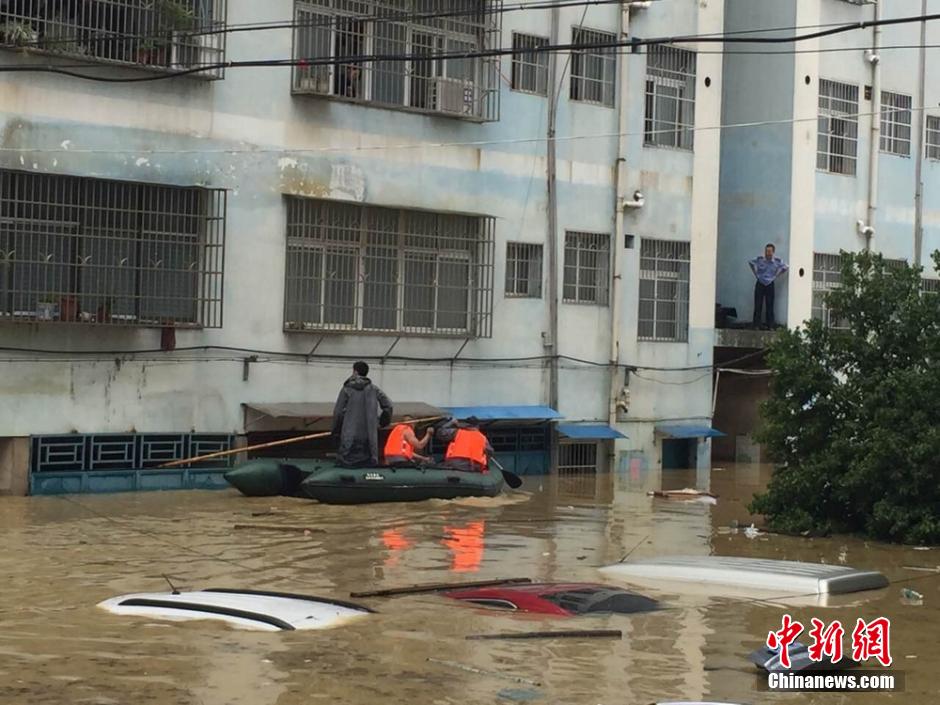 5月5日,地處湘南的永州市道縣遭遇暴風(fēng)雨襲擊,縣城內(nèi)多處低洼路段被水淹沒(méi)。當(dāng)?shù)胤姥床块T正嚴(yán)密監(jiān)控雨情、水情,確保安全度汛。 中新社發(fā) 何紅福 攝