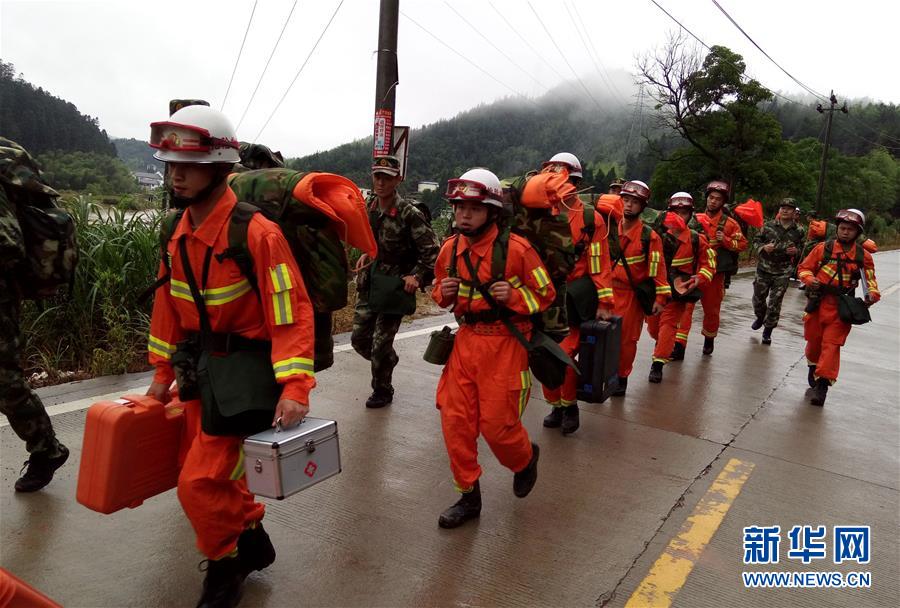 5月8日,由于當(dāng)?shù)夭糠值缆诽?,武警水電二總隊六支隊官兵徒步馳援福建泰寧山體滑坡現(xiàn)場。