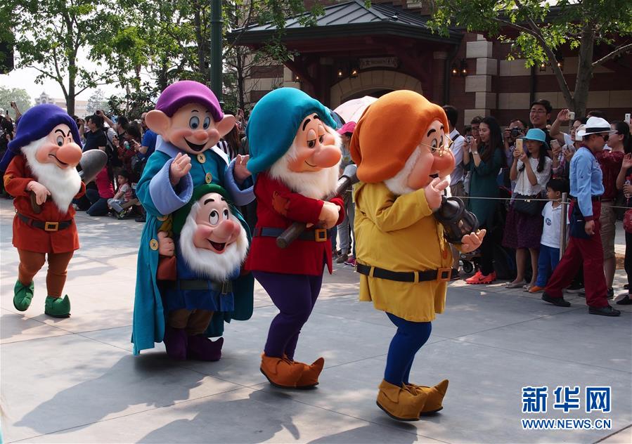 “小矮人”在上海迪士尼樂園的花車巡游上亮相(5月11日攝)。 5月11日是上海迪士尼樂園的又一個(gè)內(nèi)部測試日。在樂園運(yùn)營管理方的安排下,上萬名參加測試的樂園建設(shè)者及其家屬參觀了園內(nèi)部分景點(diǎn)和游樂設(shè)施。據(jù)悉,上海迪士尼樂園將于6月16日開幕。新華社記者 任瓏 攝