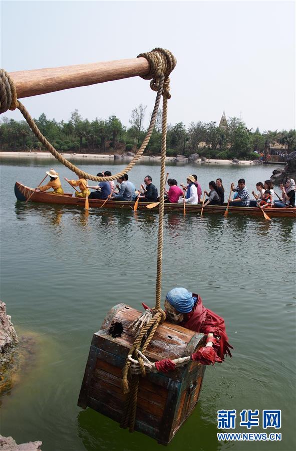 在上海迪士尼樂園里,參觀者劃著“探險(xiǎn)家獨(dú)木舟”駛?cè)搿皩毑貫场保?月11日攝)。 5月11日是上海迪士尼樂園的又一個(gè)內(nèi)部測試日。在樂園運(yùn)營管理方的安排下,上萬名參加測試的樂園建設(shè)者及其家屬參觀了園內(nèi)部分景點(diǎn)和游樂設(shè)施。據(jù)悉,上海迪士尼樂園將于6月16日開幕。新華社記者 任瓏 攝