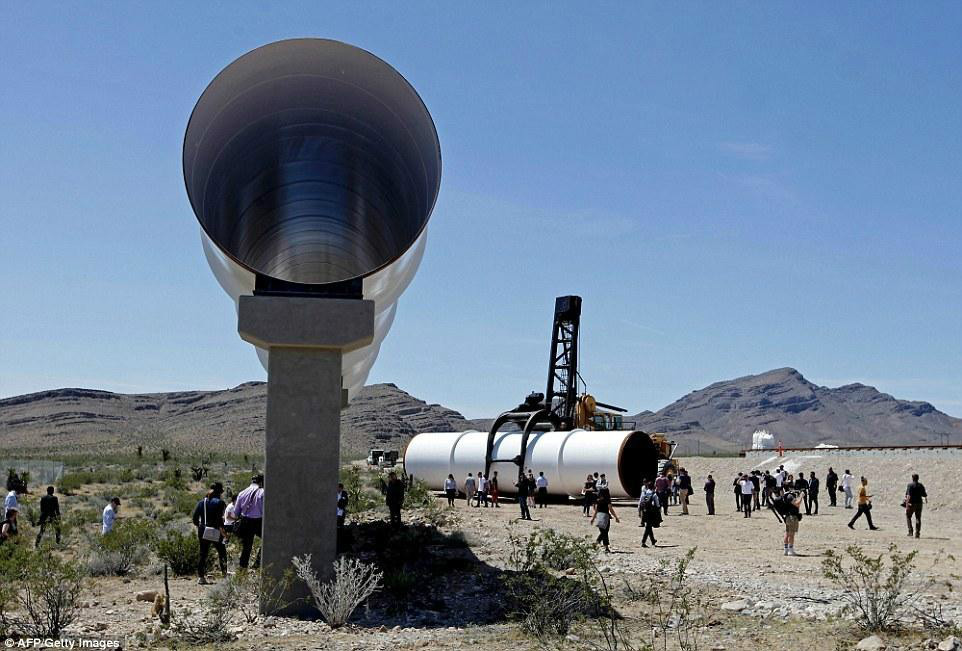 圖為Hyperloop One公司超級高鐵模型遠景,他們正在與另一家公司競爭,爭取首先開發(fā)出改變?nèi)藗兩畹某咚倭熊嚒?/p>