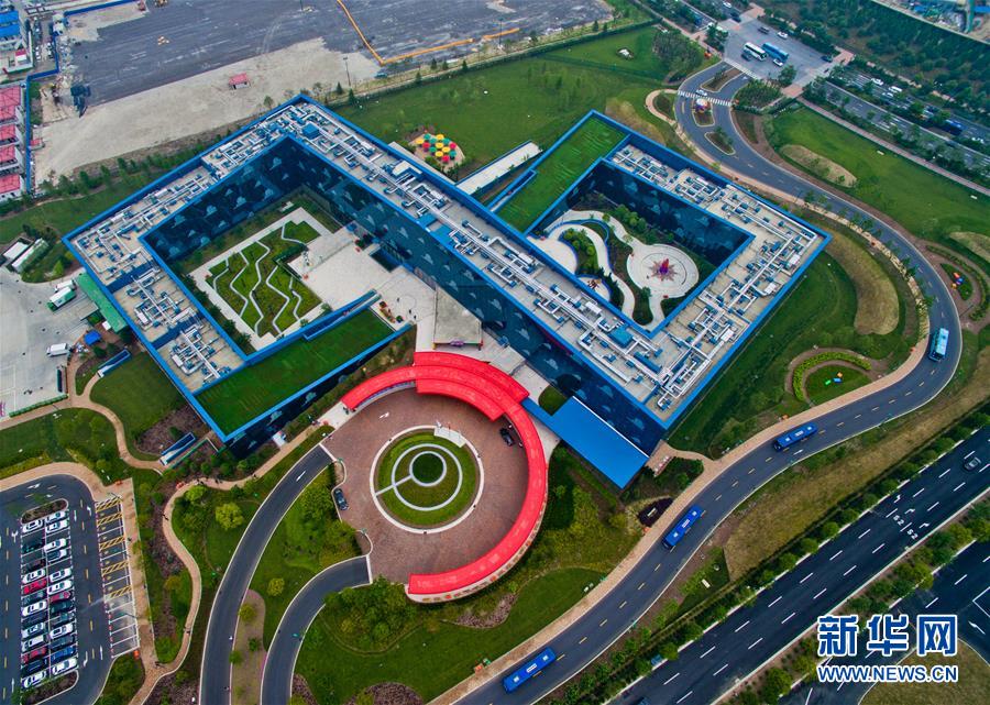 5月15日從空中俯瞰上海迪士尼玩具總動(dòng)員酒店。當(dāng)日,上海迪士尼主題酒店之——玩具總動(dòng)員酒店大堂、廣場(chǎng)、餐廳、度假區(qū)短駁車等區(qū)域及設(shè)施開始內(nèi)部測(cè)試。這家共有800個(gè)房間的主題酒店將于6月中旬正式迎客。新華社發(fā)(鈕一新 攝)