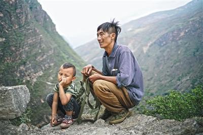 圖為5月14日,在三名家長的保護下,15個孩子從勒爾小學出發(fā),走崖壁,爬藤梯,踏上回家的路。4月27日,阿土勒爾村的一個村民摔下了懸崖,村子里的大人對在山下讀書的孩子更加擔心起來。阿土勒爾村有15個6至15歲的孩子在山腳下的勒爾小學上學,平時住校,每月月中和月底的周末才回家。每次上下山,家長們都會輪流接送。5月14日是家長接孩子的日子,清晨6點多,30多歲的陳古吉帶著背包繩和另外兩個家長一起下山接孩子。村里身手敏捷的年輕人,下山通常需要1小時,上山大約90分鐘,對于外來的人,通常是這個時間的兩倍。