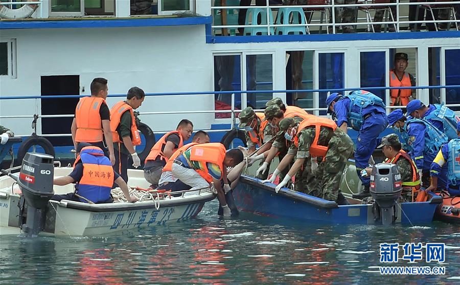 打撈遺體現(xiàn)場。截至目前,這起事故已造成2人死亡、13人失蹤,搜救工作仍在進行中。 新華社記者薛玉斌攝 圖片來源:新華網(wǎng)
