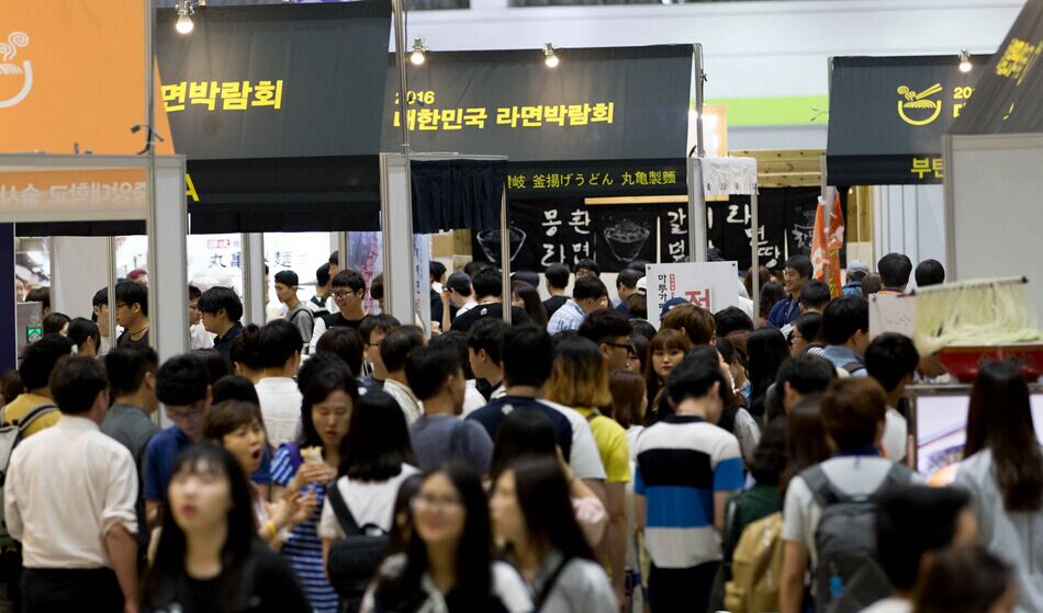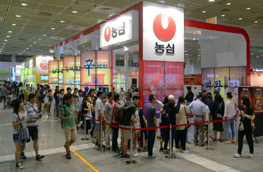拉面(編者注:相當(dāng)于國內(nèi)的方便面)在韓國被成為“國民食品”,此次拉面博覽會(huì)旨在宣傳拉面的歷史和發(fā)展趨勢,提升和推進(jìn)韓國拉面的品牌度和出口,同時(shí)了解和品嘗世界各國的拉面。
