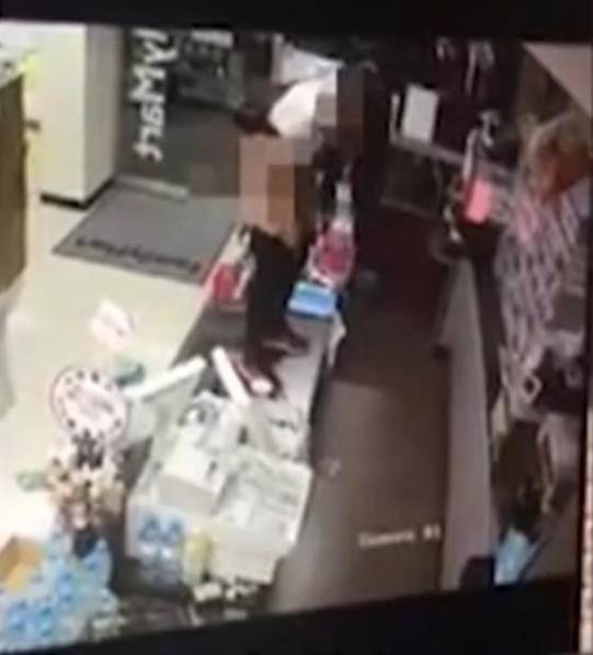 男店員企圖阻止女顧客但不果,之后拿起手機(jī)似乎在通報(bào)事件,然后男店員便躲到一旁。