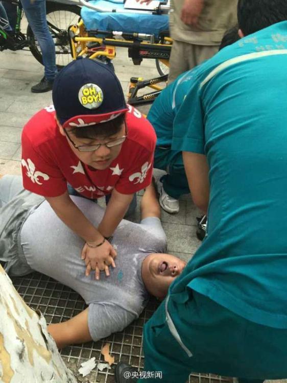 8月9日18點(diǎn)30分,鄭州人民醫(yī)院男護(hù)士李笑展在趕赴約會(huì)的路上,見路邊一50多歲的先生倒地,口唇發(fā)紫呼吸困難,他立即上前對其采取了胸外按壓急救措施;待急救車趕到,他協(xié)助救援,直到病人病情穩(wěn)定才離開。 央視記者 邱寶華 圖片來源:央視新聞微博
