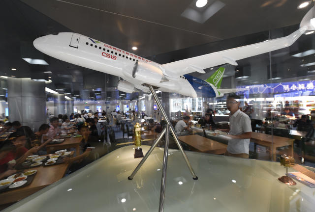 8月29日,在設(shè)計(jì)成“航空餐廳”的南航將軍路校區(qū)五食堂,一名用餐學(xué)生從航空航天模型展臺(tái)邊走過(guò)。