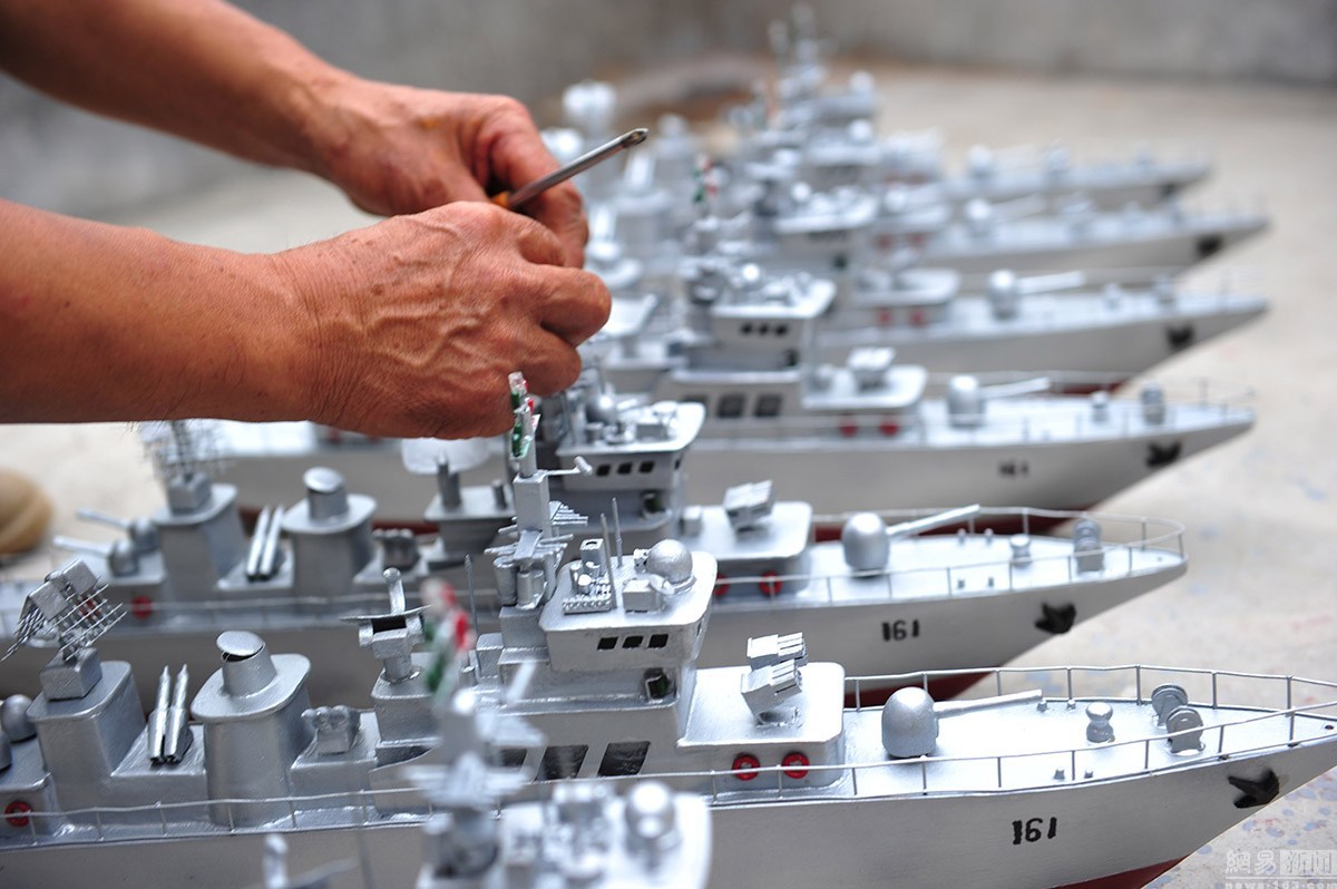 1月9日,今年59歲的郭長海,是山東省日照市山海天旅游度假區(qū)肖家村一位普通的漁民。從2005年開始,他自己純手工制作“軍艦”模型,可以說是到了癡迷的程度。十幾年來,他先后花費近6萬多元人民幣,造出了7艘可實現(xiàn)模擬槍炮發(fā)射的“軍艦”模型,十幾艘小軍艦模型。幾年來,因為他的癡迷,郭長海也成為網(wǎng)絡(luò)、報紙、電視,以及自媒體等關(guān)注報道的對象,成為“網(wǎng)紅”。