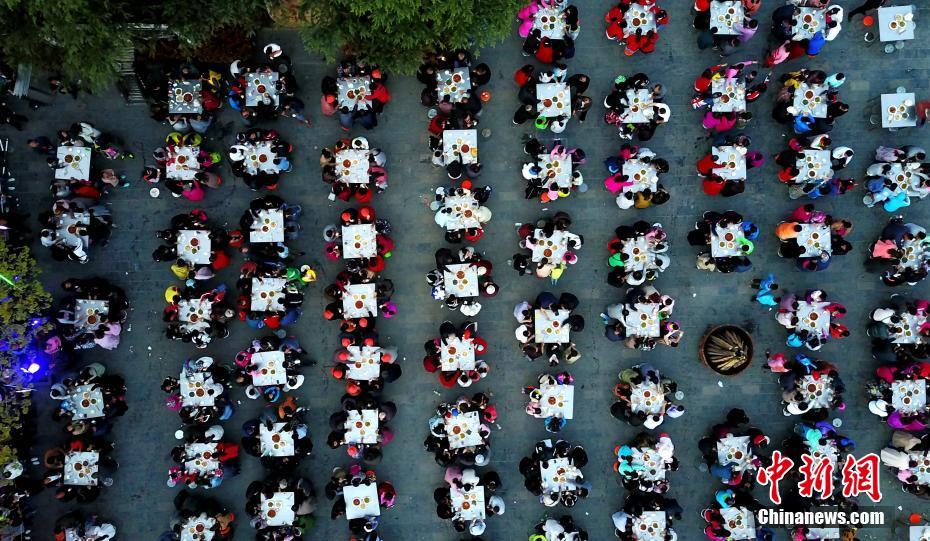 4月22日晚,河南欒川雞冠洞高山牡丹節(jié)開幕,特地舉辦千人牡丹宴,當(dāng)?shù)氐奶厣珯璐ǘ垢?、樹芽菜以及主菜牡丹燕菜紛紛上桌,吸引上千民眾品嘗,場面壯觀。 中新社記者 王中舉 攝