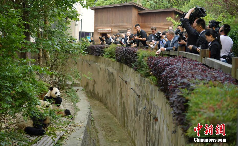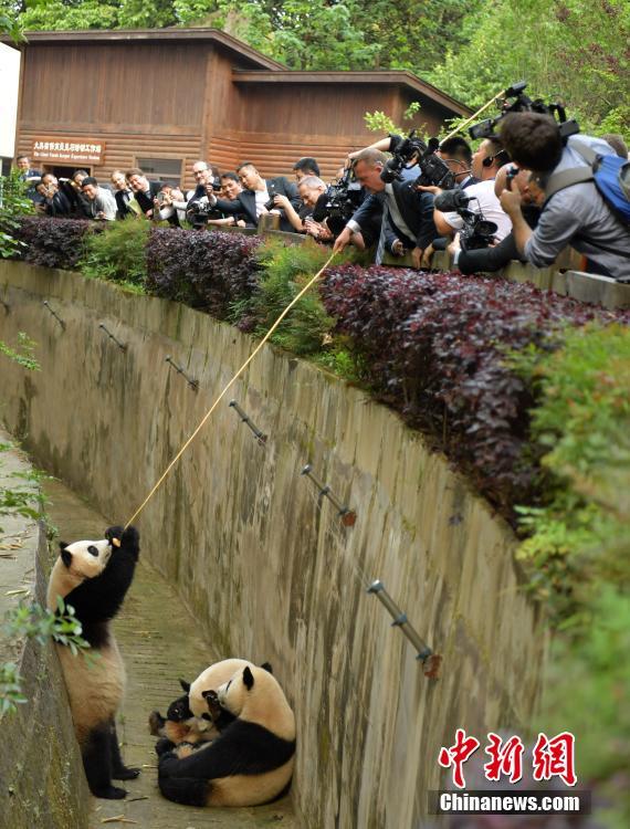 5月2日,丹麥?zhǔn)紫嗬鼓律瓉?lái)到成都大熊貓繁育研究基地看大熊貓,并“品嘗”熊貓窩窩頭。當(dāng)日,應(yīng)中國(guó)國(guó)務(wù)院總理李克強(qiáng)邀請(qǐng),丹麥?zhǔn)紫嗬鼓律D行抵達(dá)中國(guó)成都,開(kāi)始對(duì)中國(guó)進(jìn)行正式訪問(wèn),拉斯穆森此訪系其2015年當(dāng)選首相以來(lái)首次訪華,其訪問(wèn)首站就來(lái)到四川成都。中新社記者 劉忠俊 攝