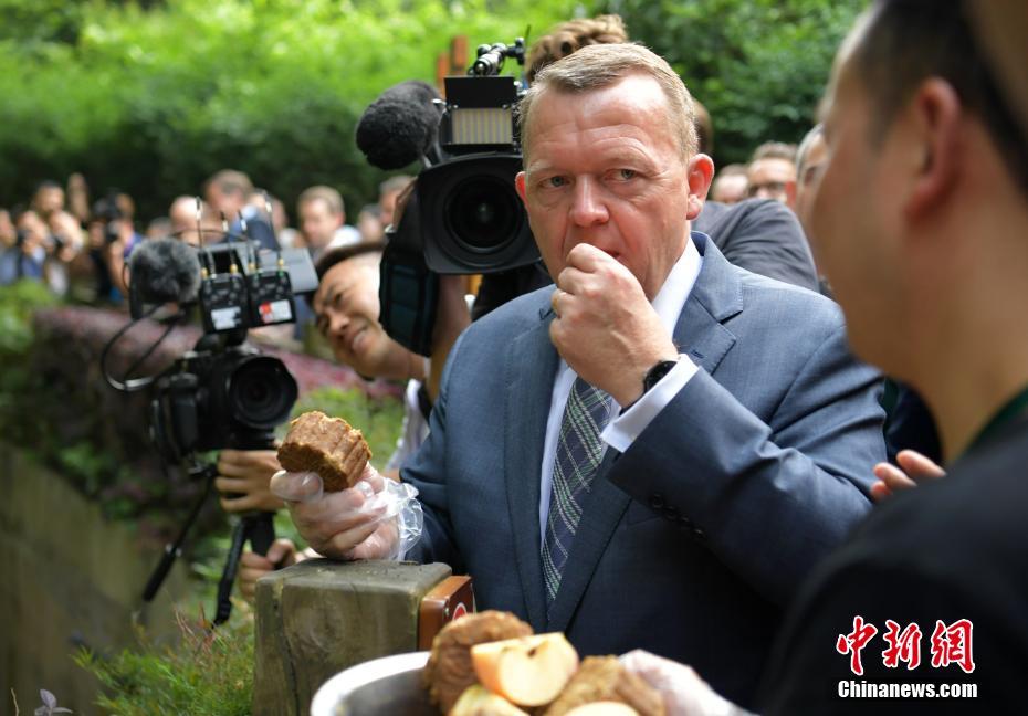 5月2日,丹麥?zhǔn)紫嗬鼓律勾笮茇埑蕴O果。當(dāng)日,應(yīng)中國(guó)國(guó)務(wù)院總理李克強(qiáng)邀請(qǐng),丹麥?zhǔn)紫嗬鼓律D行抵達(dá)中國(guó)成都,開(kāi)始對(duì)中國(guó)進(jìn)行正式訪問(wèn),拉斯穆森此訪系其2015年當(dāng)選首相以來(lái)首次訪華,其訪問(wèn)首站就來(lái)到四川成都。中新社記者 劉忠俊 攝