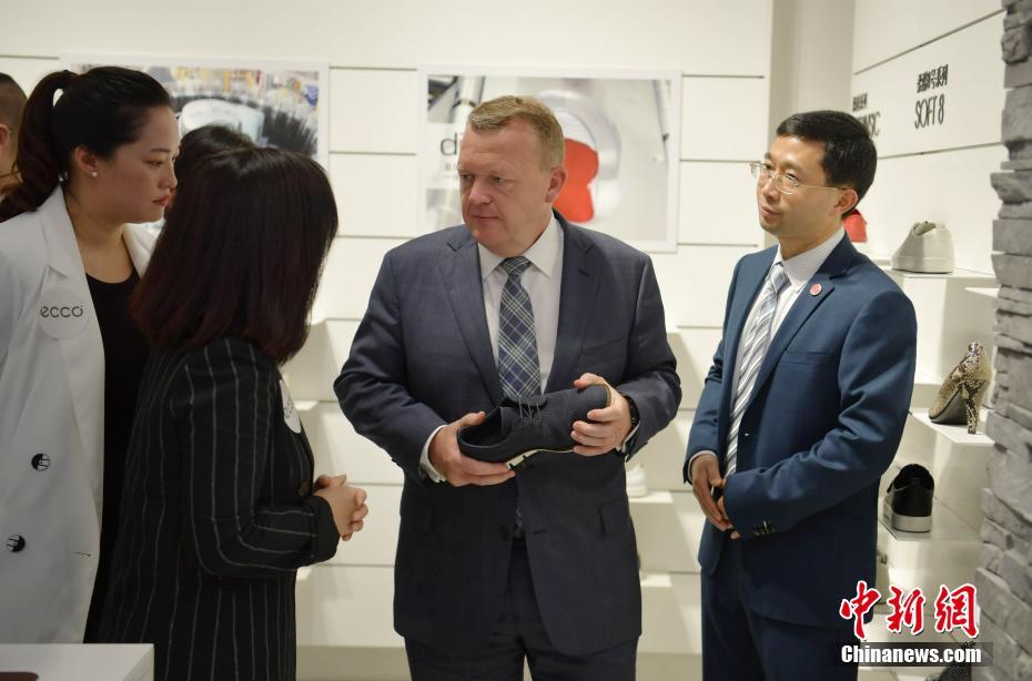 5月2日,丹麥?zhǔn)紫嗬鼓律构涮爬?,走進(jìn)1963年創(chuàng)立于丹麥的“愛(ài)步”鞋類品牌店了解情況。當(dāng)日,應(yīng)中國(guó)國(guó)務(wù)院總理李克強(qiáng)邀請(qǐng),丹麥?zhǔn)紫嗬鼓律D行抵達(dá)中國(guó)成都,開(kāi)始對(duì)中國(guó)進(jìn)行正式訪問(wèn),拉斯穆森此訪系其2015年當(dāng)選首相以來(lái)首次訪華,其訪問(wèn)首站就來(lái)到四川成都。中新社記者 劉忠俊 攝