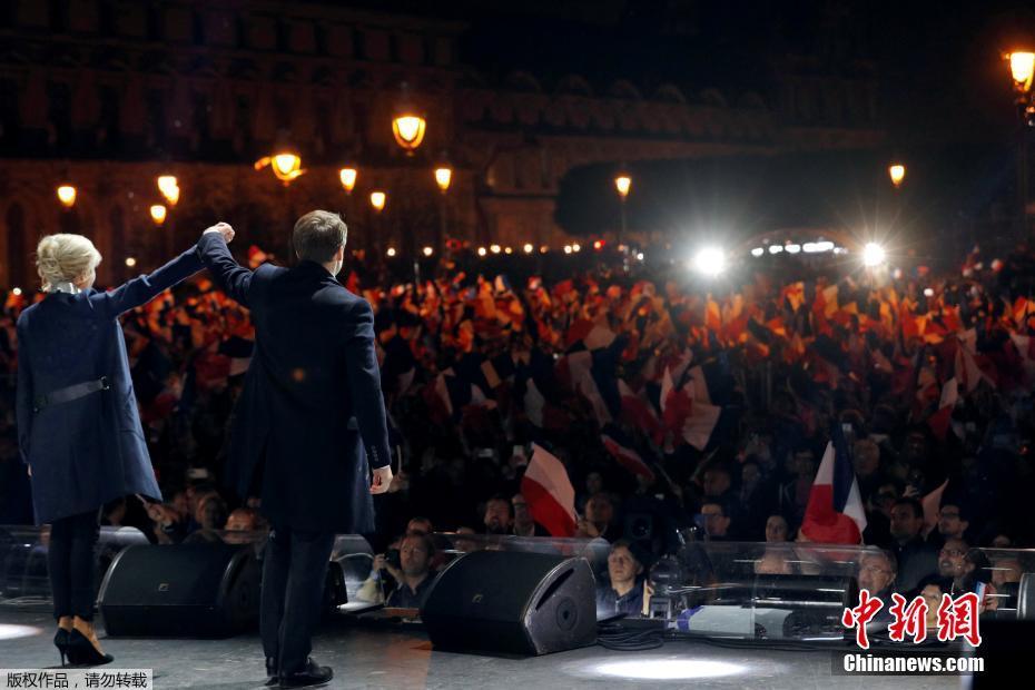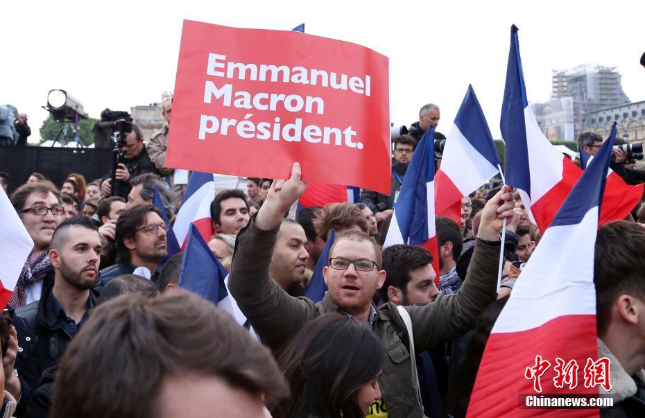 巴黎時間5月7日晚,法國總統(tǒng)選舉第二輪投票初步計票結果顯示,中間派獨立候選人、“前進”運動領導人埃馬紐埃爾·馬克龍以大幅優(yōu)勢擊敗極右翼政黨“國民陣線”候選人馬麗娜·勒龐。年僅39歲的馬克龍由此成為法國史上最年輕的總統(tǒng),也成為世界上最年輕的大國領導人。圖為馬克龍的支持者在得知馬克龍當選后歡呼。中新社記者 龍劍武 攝