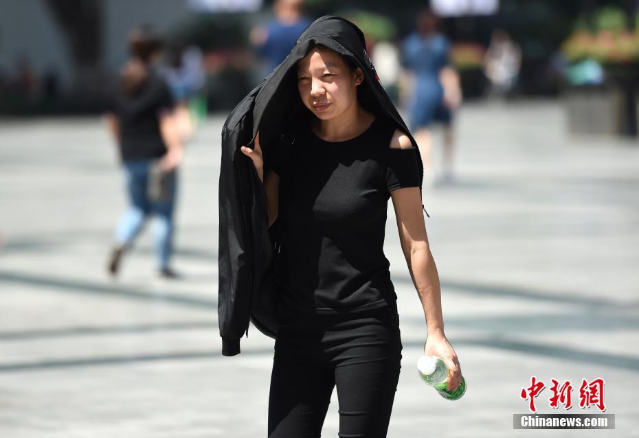 5月17日,重慶氣溫升至30℃以上,市民將隨身衣物頂在頭上遮擋烈日。據(jù)中央氣象臺消息,17日-19日,北方多地將遭遇今年以來首次大范圍高溫天氣,涉及京津冀、內(nèi)蒙古等7省市區(qū),其中18日高溫范圍最廣、強度最大,內(nèi)蒙古東部偏南地區(qū)局地更有可能出現(xiàn)38-40℃的最高氣溫。周毅 攝