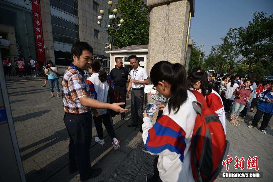 6月7日,2017年高考大幕正式拉開,全國(guó)將有940萬考生參加考試。今年可謂是高考?xì)v史上的特殊年份,一方面,今年是高考恢復(fù)40周年,另一方面,今年也被稱為“新高考元年”,高考綜合改革試點(diǎn)地區(qū)的考生將迎來首次“新高考”。圖為北京市171中學(xué)考點(diǎn)的考生陸續(xù)進(jìn)入考場(chǎng)。中新網(wǎng)記者 金碩 攝