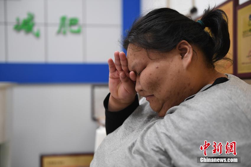 左亞慈1米65的身高體重達(dá)400斤,腰圍達(dá)5尺5。從小就被肥胖困擾的她,初二就輟學(xué)在家。張瑤 攝