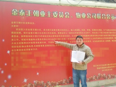 3月16日,福鑫物業(yè)和小區(qū)業(yè)主委員會(huì)聯(lián)合在小區(qū)入口處張貼告示,稱福鑫物業(yè)是金泰王朝小區(qū)唯一合法收費(fèi)單位。